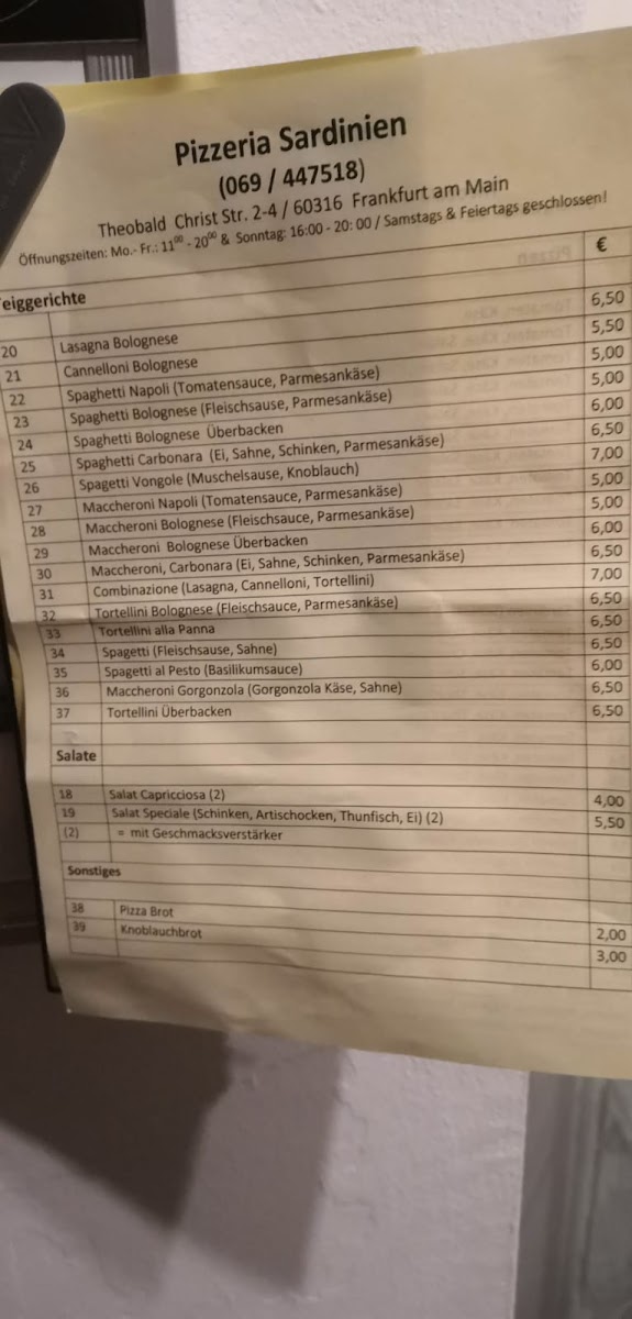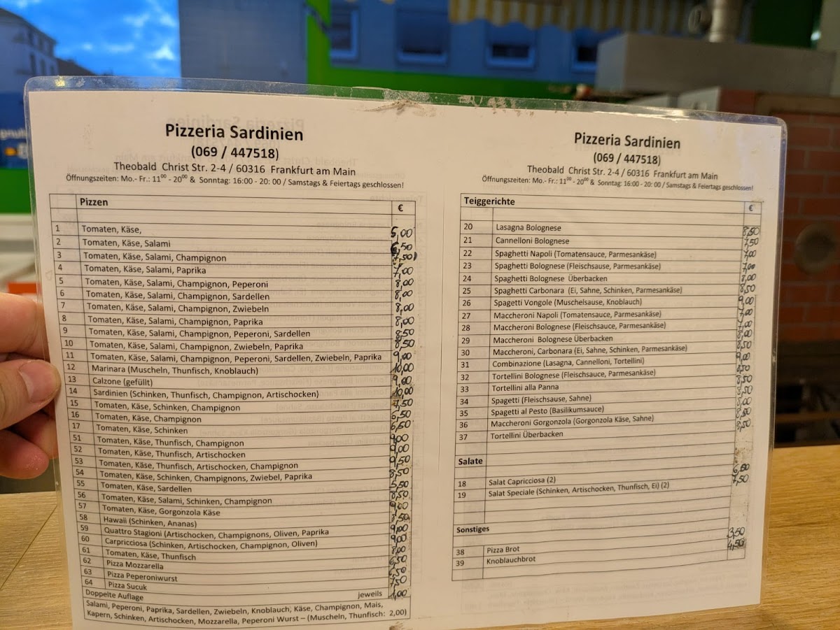 Pizzeria Sardinien, nestled in the heart of Frankfurt am Main, offers a genuine taste of Italian pizza crafted with fresh, high-quality ingredients. This cozy spot on Theobald-Christ-Straße is renowned for its authentic, flavorful pizzas that leave a lasting impression. Customers frequently praise the perfect balance of toppings on classic varieties such as the vegetarian and cheese pizzas, highlighting the rich, satisfying flavors that come straight from the oven.